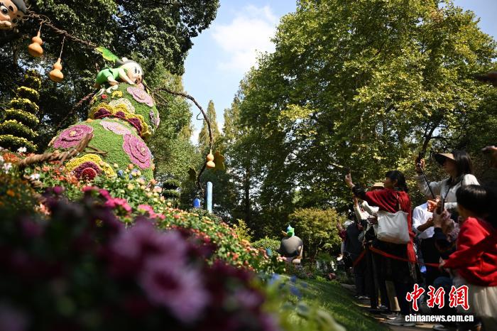 10月29日,大作《葫芦童忆》吸收观光者。当日,2025第5届少3角菊花粗品铺暨杭州第11届菊花艺术铺正在浙江杭州动物园开幕,该铺会聚少3角区域劣量菊花资本取菊艺结果,700多个菊花种类、远5万盆菊花为公众出现春日衰景,吸收大批观光者。中新社记者 王刚刚 摄